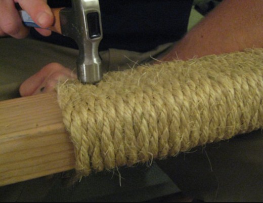 Comment la corde de sisal est-elle enroulée autour de la colonne?