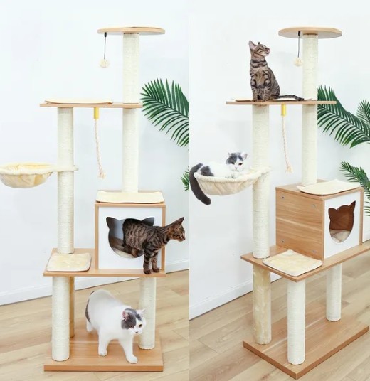 | Durabilité et stabilité | Le bois respectueux de l'environnement a une force et une ténacité naturelles, peut résister à l'escalade et à sauter des chats, a une bonne résistance à la corrosion et une résistance aux insectes, et prolonge la durée de vie de l'arbre de chat |