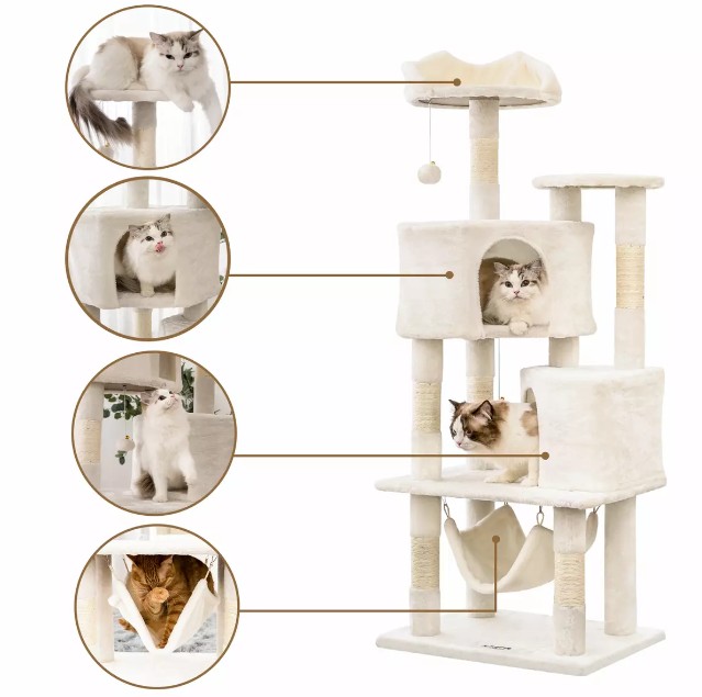 3. Enrichir l'expérience de vie des chats: les arbres de chats sont généralement équipés d'une variété de jouets et d'appareils interactifs, tels que des balles suspendues et des cordes oscillantes, qui peuvent stimuler les instincts de chasse des chats et les laisser s'amuser et satisfaire dans le jeu. En jouant, les chats peuvent consommer de l'énergie et améliorer l'interaction et le lien émotionnel avec leurs propriétaires.