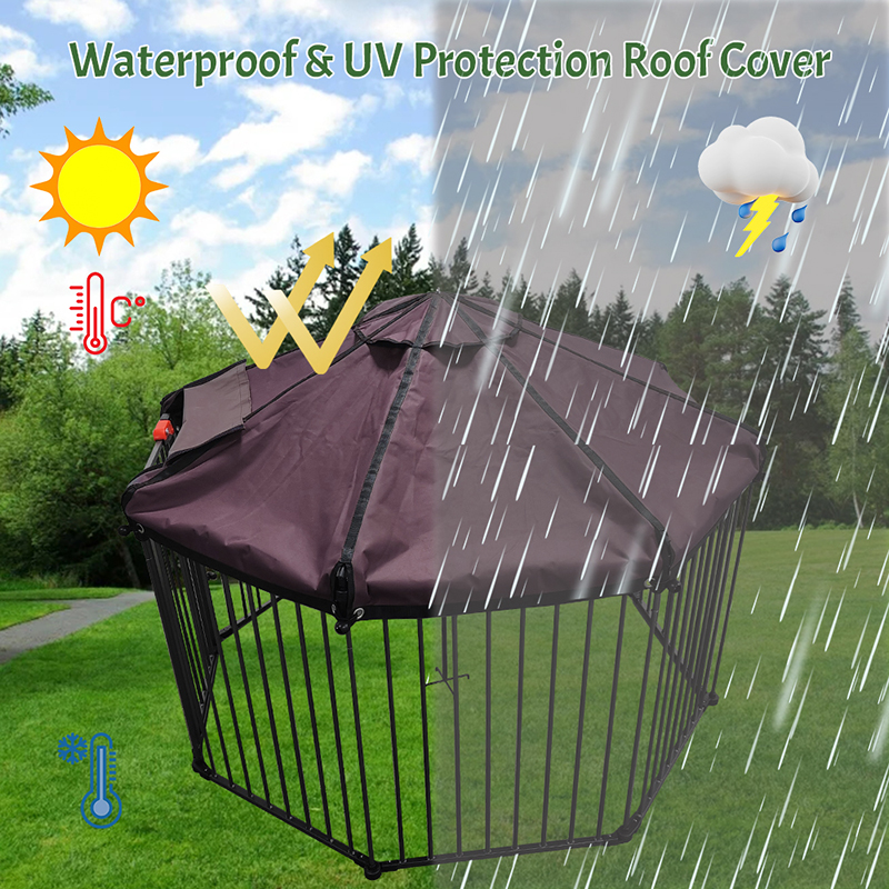 1. Toute protection contre les intempéries: Cage de gros chiens du tube Fabriqué de système de fixation de corde élastique en tissu oxford imperméable résistant aux UV, protège efficacement contre le soleil et la pluie, le revêtement résistant aux UV dure et empêche la décoloration.