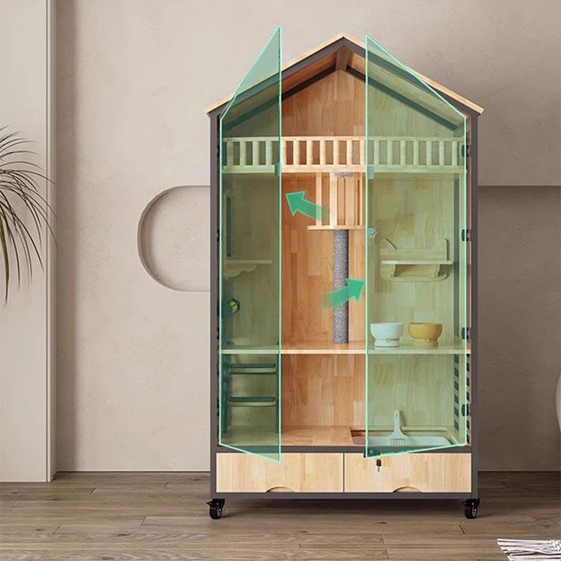 1. Matériaux de haute qualité: La structure de la maison de chat en bois est l'acier au carbone en verre trempé en bourse